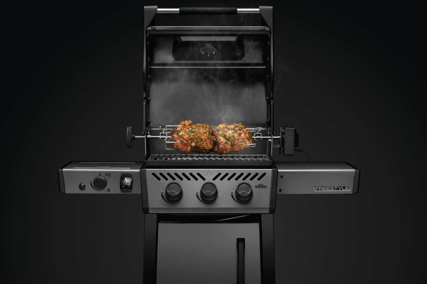 Der Propangasgrill Freestyle 365 ist ein Kompaktgrill mit erstklassigen Funktionen und unschlagbarem Preis-Leistungsverhältnis. Mit dem Flammenstrahl des JETFIRE Zündsystems wird Ihr Grill schnell, einfach und zuverlässig angezündet. Die porzellanemaillierten Grillroste aus Gusseisen ermöglichen ein perfektes Anbraten. Die drei Edelstahlbrenner ermöglichen eine gleichmäßige Verteilung der Hitze, die über das integrierte Themometer einfach gesteuert und kontrolliert werden kann. Grillen Sie Ihr Steak wie ein Profi an oder bereiten Sie Ihre Beilagen auf dem SIZZLE ZONE™ Infrarot Seitenbrenner zu. Mit den robusten Rollen können Sie Ihren Grill an jeden gewünschten Ort schieben. Dank einer abklappbaren Seitenablage mit Haken für Grillbesteck und einem Flaschenöffner passt sich der Freestyle ganz an Ihren Lebensstil und Ihr Platzangebot an.