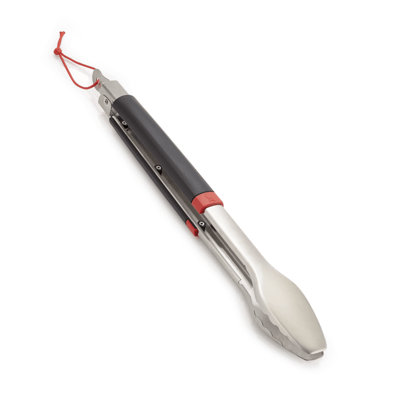 Mit dieser Grillzange lassen sich Steaks und Gemüse mühelos greifen und wenden. Dieses unentbehrliche Grillzubehör verfügt über ein Verschlusssystem, das die Zange für eine kompakte Aufbewahrung verriegelt. Spülmaschinenfest für eine einfache Reinigung.