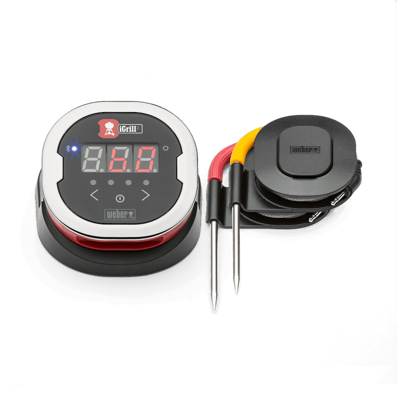 Mache das Grillen zum Kinderspiel und erziele immer die perfekte Garstufe – ohne ständig das Grillgut zu überprüfen. Verwende das Digitalthermometer iGrill 2, um gleichzeitig bis zu vier Fleischstücke zu überwachen und bei allen die richtige Garstufe zu erreichen. Dieses magnetische, drahtlose Thermometer für die Montage am Grill verfügt über eine Batterielebensdauer von 200 Stunden sowie eine Reichweite von 45 Metern (ohne Hindernisse). Es umfasst zudem zwei professionelle Fleischtemperaturfühler mit Farbkennzeichnung und bietet Anschlussmöglichkeiten für bis zu vier Fühler. Mithilfe der iGrill-App kannst du das Thermometer mühelos mit deinem Mobilgerät koppeln. So wirst du sofort benachrichtigt, sobald dein Grillgut die perfekte Garstufe erreicht hat. Darüber hinaus besitzt das iGrill 2 ein beleuchtetes Display mit LED-Temperaturanzeige. Du musst also nie wieder den Deckel deines Grills oder Smokers anheben und den Garprozess unterbrechen.