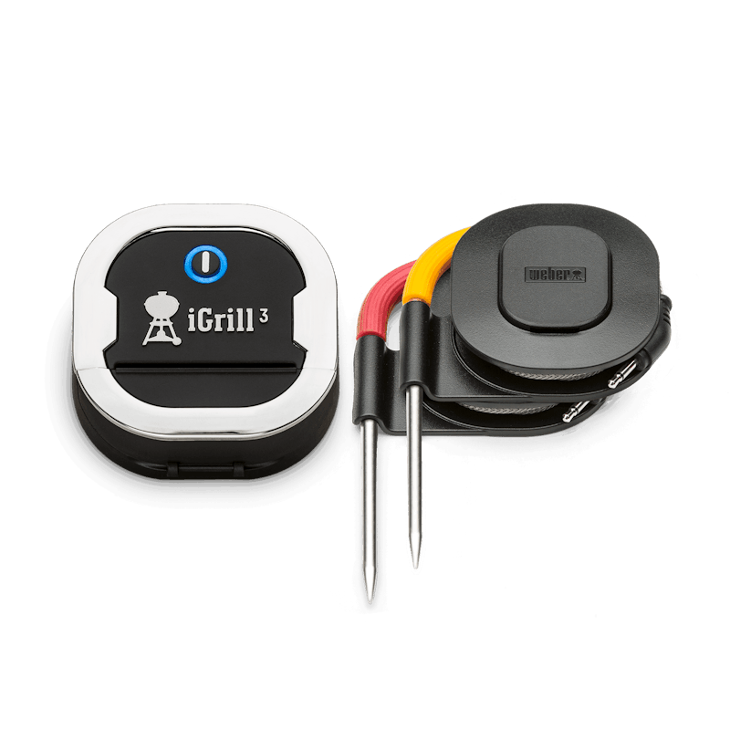 Werde zu einem echten Grillmeister – ohne dass du dein kostbares Grillgut anschneiden, einstechen oder eindrücken musst. Überwache bis zu vier Fleischstücke gleichzeitig und erziele bei allen die perfekte Garstufe – mit dem iGrill 3 Digitalthermometer. Das Thermometer wurde exklusiv für die permanente Montage am Seitentisch eines Weber Spirit II, Genesis® II oder Genesis® II LX entwickelt. Dieses Thermometer verfügt über eine Batterielebensdauer von 250 Stunden sowie eine Drahtlosverbindung mit einer Reichweite von 45 Metern (ohne Hindernisse). Es umfasst zudem zwei professionelle Fleischtemperaturfühler mit Farbkennzeichnung und bietet Anschlussmöglichkeiten für bis zu vier Fühler. Über die iGrill-App von Weber verbindet es sich mühelos mit deinem Mobilgerät und benachrichtigt dich, sobald dein Grillgut die gewünschte Garstufe erreicht hat. Das bedeutet, dass du den Deckel stets geschlossen halten kannst und den Garvorgang im Grill oder Smoker nicht mehr unnötig unterbrechen musst.