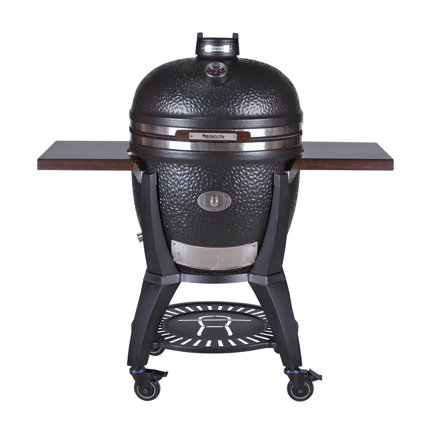 Das markante Design des Avantgarde LeChef wird durch eine wiederstandsfähige Satin-Matt Glasur und optionalen Seitentische aus karbonisiertem Heavy Bamboo geprägt, die nicht nur für eine edle Optik, sondern auch für außergewöhnliche Haltbarkeit sorgen. Ergänzt werden kann dies durch ein Gestell aus tiefgezogenem Stahl, das dem Grill Stabilität verleiht, während die leichtgängigen Schwerlastrollen für eine mühelose Mobilität sorgen.