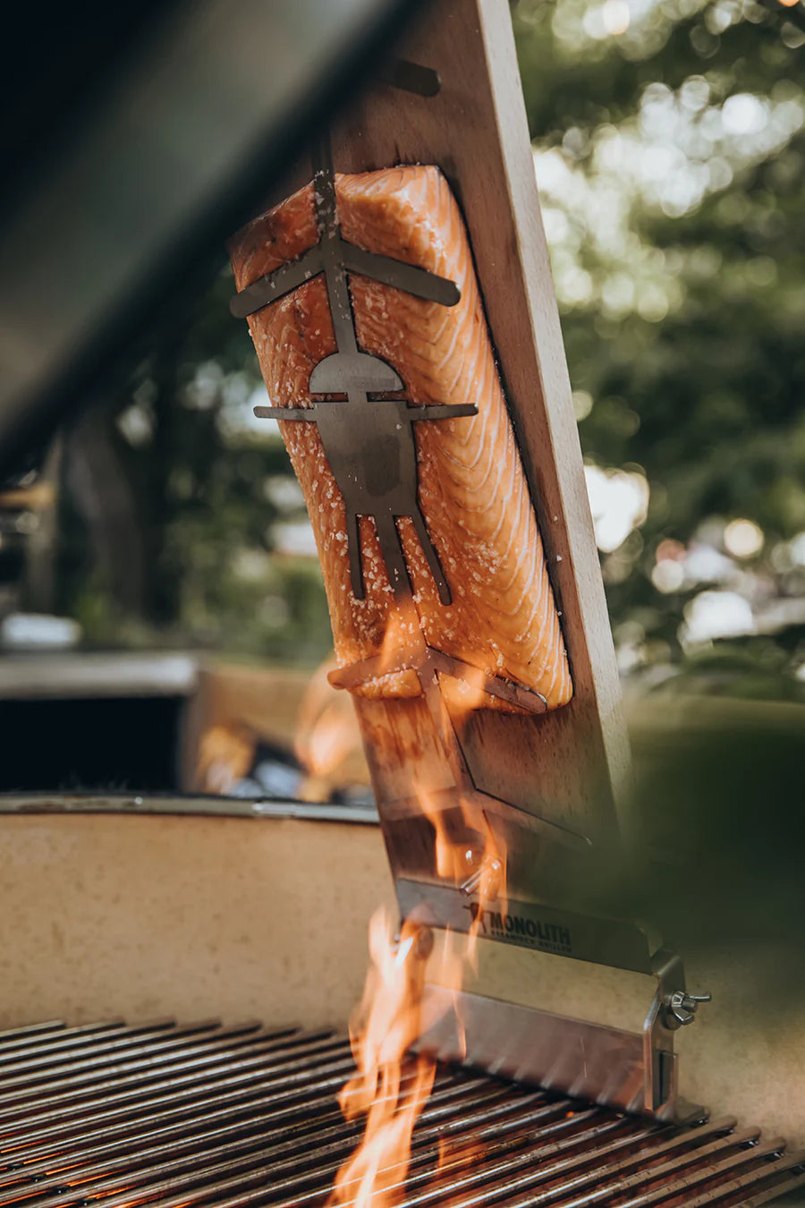 Das Flammlachs-Grillzubehör von MONOLITH ist ein Hit in Skandinavien und gewinnt auch in unserer Heimat immer mehr an Beliebtheit. Dieses spezielle Zubereitungsmethode verleiht dem Lachs ein einzigartiges Aroma vom Holzfeuer und sorgt dafür, dass der Fisch auf schonende Weise gegart wird. Dieses Flammlachsbrett ist sowohl mit dem MONOLITH Classic als auch mit dem MONOLITH LeChef kompatibel.